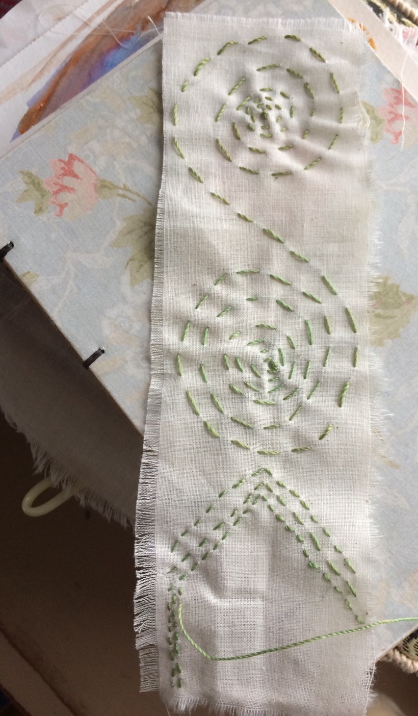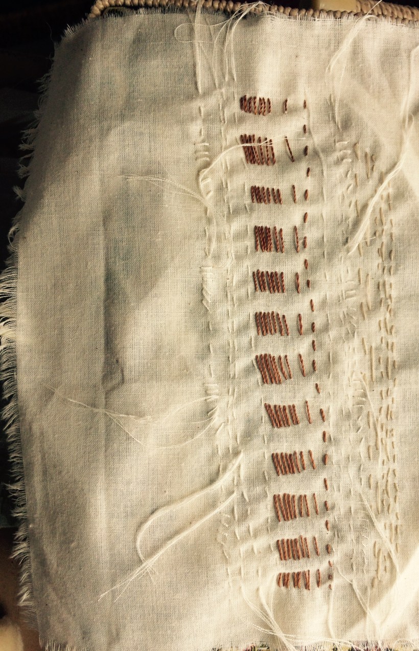 My partner in stitching and I agreed to extend the running stitch squares for another week. The last several days have included busy spots that I could only describe as Tetris-like. When the days actually worked out, I marveled at my ability to pull it all off. But sadly, I didn’t get as much stitching in as I wanted and so suggested extending it by a bit.