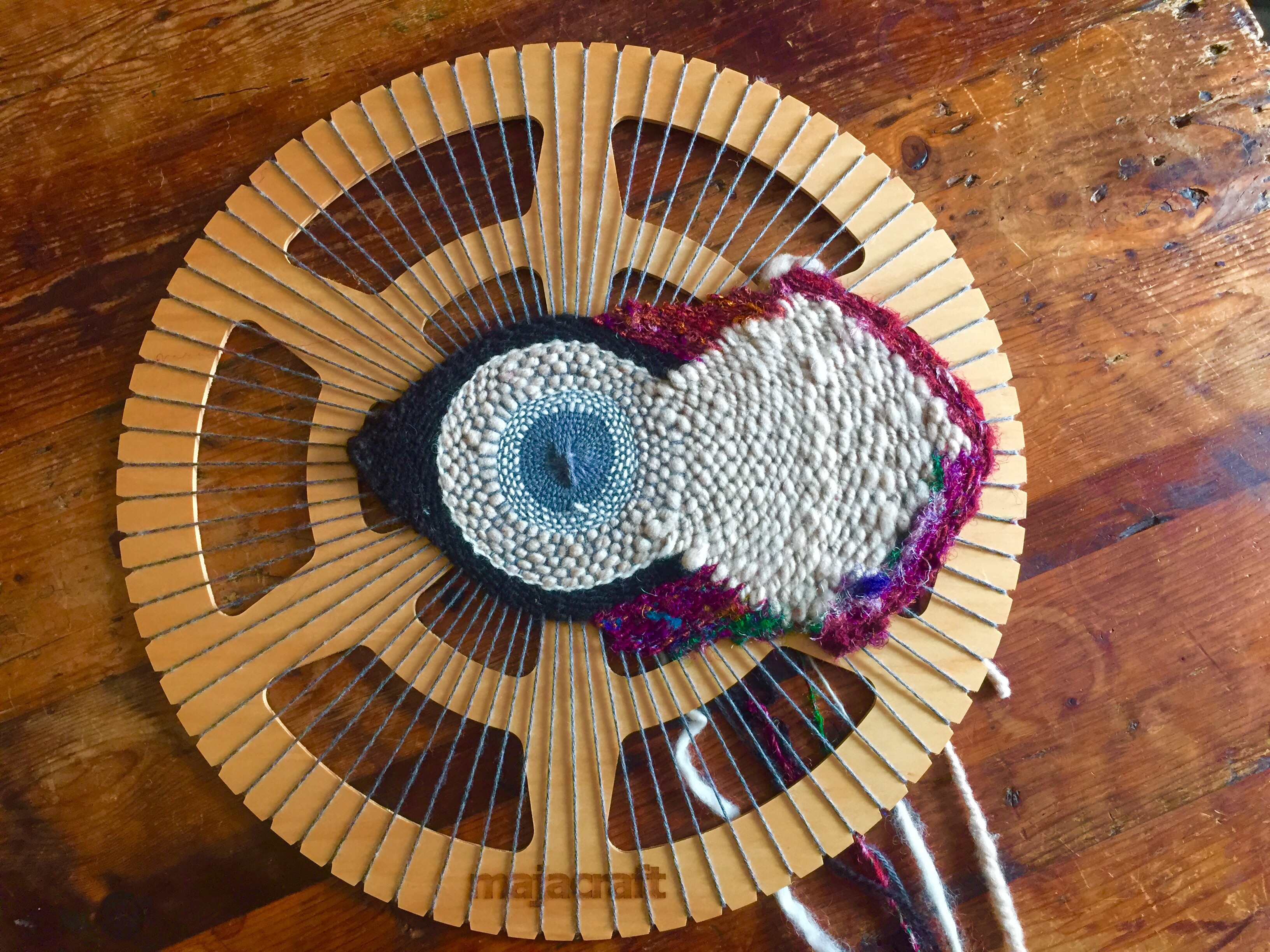 My daughter’s 1st grade class didn’t do many rows on theirs, but I assured their teacher I could make wall-art with it, not to worry. That class also did epically cool stuff with wool they dyed with Kool Aid, wool they felted and wool they experimented with.