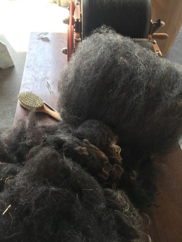 And some Shetland carding while the dye pots do their thing…