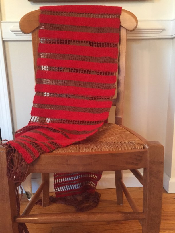 Yesterday evening I took a piece off my rigid heddle loom I’d started weeks ago. September 1st, I think.