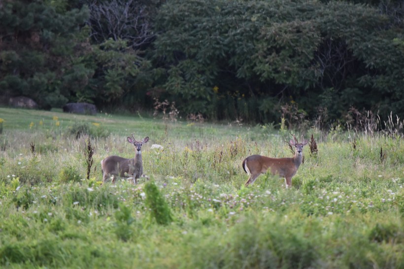 I’ve captured a picture of two bucks who visit our yard from time to time. One is missing an antler. The Jungian in me can’t help but ruminate on this image.