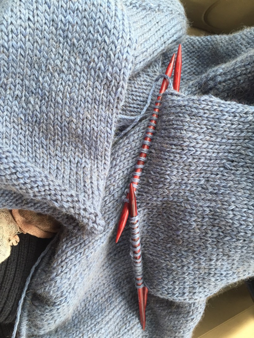 Off to a lecture at UVM, and in between events today I’ll work on finishing the second sleeve of my sweater.