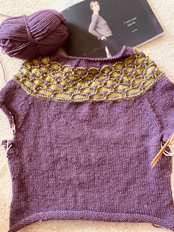 I’m working on a sweater that is taking a wee bit longer than expected due to pesky arthritis.