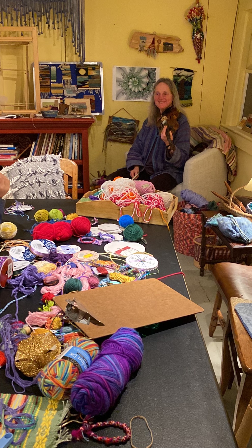 I think we all know this intuitively, but what I’ve found is that people of all ages need access to opportunities where they can experiment, follow their noses, see what happens, try this and that, on low-stake projects. As we age, many of us become concerned with how much things cost, how much “time is worth”, how useful something is, and whether there is value to whatever it is we are doing. It puts so much pressure on the creative part of ourselves that just needs a freakin’ minute to look at things, try things out, observe what happens when certain materials interact with others, and take notice of how we feel about what we are seeing and experiencing. We need the chance to just be and drop in to our flow. When teaching elementary aged people as well as folks in their senior years, I’ve heard many exclaim, “Oh wow, I get to use this?” and, “I can’t believe I can weave with all of this! It’s so much fun!”