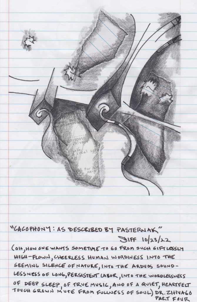 I reflect on a current event, historical event,a recent interaction with a person be it emotional or cerebral, or anything else that holds my interest. I will then make a series of drawings to create context & reconcile that particular subject/idea/emotional response with at least three drawings and often twenty five or more small 5 /12″ x 8 1/2″ graphite or pen & ink drawings. (30-60 minute drawings). When I am truly inspired, I will translate one of those drawings into a painting. (5 hours to 45 hours per painting). I am not concerned with generating artwork. I am not constantly drawing. I create visual art in yearly cycles. I play guitar every day :). Beginning in 2020 I started exploring foreign languages and what may be lost in translation. I read a lot of Dostoevsky, Tolstoy, Chekhov, Gogol, Turgenev, Pushkin, Bulgakov & Pasternak novels during the pandemic. I considered Russian literature being translated into English prose, and being reliant on a translator. I also considered the Tao Teh Ching (which I consider poetry, and have read and revisited for many years) being translated into English. This led me to begin visually considering Chinese characters (hanzi) and Hebrew characters (Ktav Ashuri) and working them into a series of artwork: using them to convey ideas & feelings outside of the spoken & written language I use in daily life.